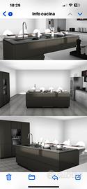 Cucina Scavolini, nuova imballata, vendo per mancato progetto, la cucina è come nelle foto, fatta eccezione per il frigorifero, il forno, le mensole e gli sgabelli, sono presenti miscelatore, lavello, piano induzione, cappa a scomparsa, microonde ad incasso, e lavastoviglie, se interessati posso fornire specifiche degli elettrodomestici e relative misure della cucina.