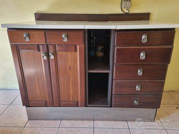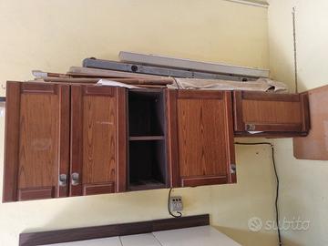 mobiletti cucina in legno, cassetti da regolare, misure piano circa cm. 128x61, altezza cm. 93, pensili superiori cm. 190 lunghezza, altezza 60, profondità 39, da ripulire bene, smontaggio e trasporto a cura del compratore