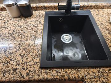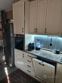 Cucina come da foto, 255x155 cm (escluso frigo) pensili alti 240 cm, vendo al prezzo di €800 compreso di top granito, piano cottura in vetro a gas 5 fuochi, lavandino marca plados colore nero mat compreso di scarichi, ma senza rubinetto. Non sono compresi forno e lavastoviglie. Eventualmente vendo, non compreso nel succitato prezzo, Frigo libera installazione. Samsung classe A++ con qualche imperfezione estetica ad € 100. Tutto compreso come da foto € 900,00. Trasporto a carico dell'acquirente. Non si effettua spedizione.