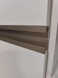 LE BASI E COLONNE SONO COLOR BIANCO OPACO, MENTRE I PENSILI SONO COLOR TORTORA EFFETTO CEMENTO E SONO ALTI 96 CM.