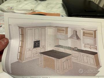 Cucina classica completa di tutto color panna con piano di lavoro nero con venature bianche, isola centrale presenta posto per lavastoviglie e lavello. Nuova mai montata, ancora imballata. Allego disegni con le misure e rendering completa di elettrodomestici . Vendiamo per cambio casa prezzo trattabile