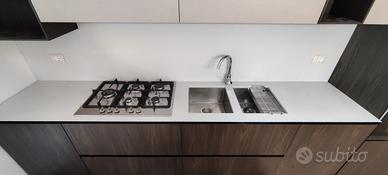Cucina Ernestomeda Stone+ in Rovere – NUOVA, MAI UTILIZZATA Cucina Ernestomeda, acquistata 3 anni fa ma mai utilizzata (causa trasferimento). Si tratta di un modello di alta gamma con top in Stone+ e pannelli in rovere, completa di elettrodomestici di qualità: Lavastoviglie AEG Forno Samsung e Microonde Bosch Frigo Whirpool series 7 da 75 cm Piano cottura a gas Cappa Faber Tutti gli elettrodomestici sono nuovi. --- Misure cucina Blocco cucina: 300 × 89 × 60 cm Colonna forno: 60 × 200 × 60 cm Colonna frigo: 75 × 209 × 60 cm Pensili grandi (x2): 89 × 60 × 34 cm Pensili piccoli (x2): 30 × 60 × 34 cm Pensili medi (x2): 60 × 34 × 34 cm Altezza totale: 213 cm Misure isola / piano lavoro Piano lavoro: 280 × 95 × 90 cm Tavolo integrato: 140 × 90 × 75 cm --- Caratteristiche principali ✔️ Materiali di pregio (Stone+, Rovere) ✔️ Design moderno e funzionale con isola e tavolo integrato ✔️ Elettrodomestici di marca inclusi ✔️ Stato impeccabile: mai usata, come nuova Se interessati, visibile su richiesta.