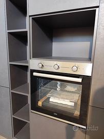 Gli elettrodomestici inclusi sono: Forno ventilato multifunzione; Frigorifero 320 lt lordi con possibilità di trasformare la colonna in dispensa; Piano cottura 5 fuochi inox; Cappa da 90 cm inox ad incasso con filtri lavabili in lavastoviglie; Lavello due vasche inox.