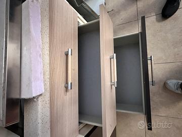 Vendo cucina completa dal design moderno, lunghezza totale 430 cm (370 cm composizione + 60 cm nicchia per frigo da incasso). ✔️ Condizioni: pari al nuovo, utilizzata solo per esposizione ✔️ Composizione: basi e pensili come da foto, cappa inclusa ✔️ Colore: finitura legno scuro con inserti chiari ✔️ Elettrodomestici: NON inclusi (mancano solo quelli) ✔️ Struttura solida e pronta per il montaggio •Lunghezza totale: 430 cm •Blocco cucina: 370 cm •Nicchia frigo: 60 cm 💰 Ottimo affare – contattami per info e prezzo! 📍 Ritiro a carico dell’acquirnte