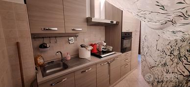 Vendesi cucina, comprensiva di forno, piano cottura con 4 fuochi e cappa, come da foto, ottime condizioni, usata pochissimo, lunga m. 3, profonda 60 cm, alta m. 2.38_€ 800