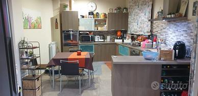 Cucina Oikos angolare cm 270 x 380 con penisola cm 150 escluso di elettrodomestici (disponibile Cappa e Lavastoviglie libera istallazione) - un tavolo pranzo in vetro cm 90 x 90 allungabile a cm 180 e n. quattro sedie in ecopelle di colore marrone.