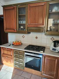 Vendo cucina ad angolo in rovere antico misura 275 x 275 h 235. La cucina è completa di piano cottura a 5 gas, lavello 2 vasche più scivolo e kappa a 2 motori. Non sono inclusi i vari elettrodomestici (forno, frigo e lavastoviglie). Prezzo €500 Daniele