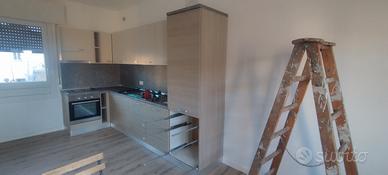 Cucina completa di forno ventilato,piano cottura 4 fuochi, capa aspirante e lavandino doppia vasca con miscelatore tutto perfettamente funzionante. Misure 137 x 215 più mobile a colonna largo 60 fornita con top e paraschizzi, mobili in buone condizioni con chiusure ammortizzate. Unico difetto un ripiano interno leggermente deformato ma facilmente sostituibile. La cucina è già smontata pronta al ritiro e completa di barre per appendere i pensili al muro.