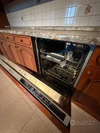 Vendo per 150€ cucina come in foto dotata di lavastoviglie (ferma da qualche mese), il frigo va tutt’ora (ha la maniglia del freezer da sostituire), il rubinetto del lavandino e da sostituire, sopra alla lavastovilglie ce gia il foro per l alloggiamento dei fuochi. Lunghezza 4 metri. Lo smontaggio è a carico dell acquirente.
