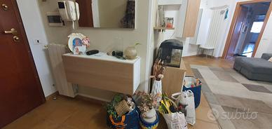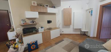 Cucina Snaidero ad angolo, con colonna frigo,colonna forno,lavastoviglie, piano cottura in vetro cambiato l anno scorso insieme al top e lavandino. Parete attrezzata acquistata l anno scorso composta da due colonne verticali laterali, colonna ingresso orizzontale, mobile a terra 6 ante tre colonne alte con sportelli apertura a pistone, no mondo convenienza ma Moretti compact. Divano a L con cassettone, puff a scomparsa e apertura dal basso per distendere le gambe