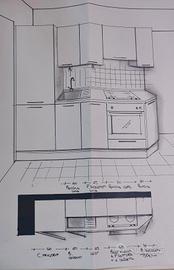 Causa trasloco si vende cucina in ottime condizioni. Modello "Speed Magnolia". Lunghezza 235 cm. altezza pensili 90 cm. colore bianco, con maniglie nere. Completa di elettrodomestici Candy: piano cottura a gas, a 4 fuochi, frigorifero "combi" da incasso con congelatore a 3 cassetti in basso, forno, lavastoviglie da 6 coperti, cappa, lavello e scolapiatti. Usata poco