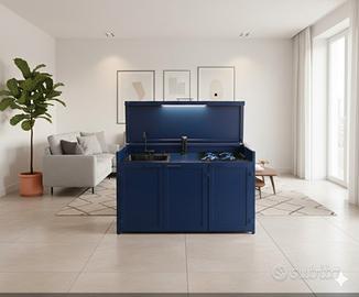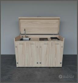 cucina in alluminio completa di lavabo una vasca fontana pieghevole tutto acciaio inox piano cottura 4 fuochi oppure due fuochi induzione scarpetta elettrica estraibile luce ricaricabile vari colori RAL a €1400,00 misure larghezza 1600 profondità 650 altezza 1100 perfetta per campeggio case vacanze ville piscine ecc