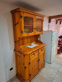 Vendo cucina per taverna in buone condizioni, legno massello completa di lavello, asciuga piatti, piano cottura separato. Inclusa credenza, appendi abiti con panca apribile e angolare con porta oggetti e porta ombrelli dello stesso stile e legno. Manca cappa aspirante che e' possibile inserire a parte come pezzo aggiuntivo.