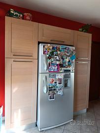 Cucina in rovere chiaro, completa di elettrodomestici (forno, frigo).