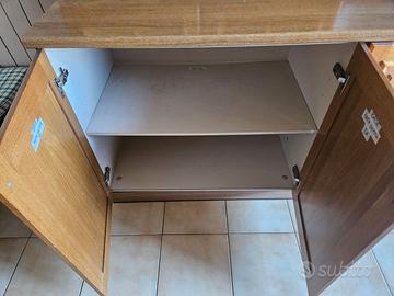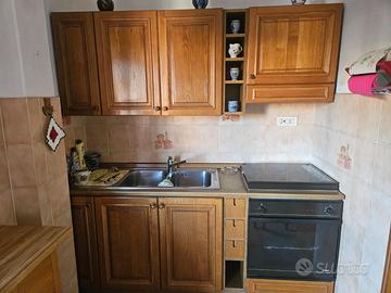 Cucina Anni 90' in vero legno usata pochissimo (era una seconda casa), perfettamente funzionante. Lunghezza 300cm altezza 215cm, TOP in laminato , compreso di frigorifero, congelatore Lunghezza 200cm altezza 215cm, TOP in laminato, forno, piano cottura, cappa e lavello. Smontaggio e ritiro a carico del acquirente