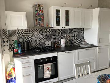 Vendo, causa inutilizzo, cucina IKEA praticamente nuova. La cucina è composta come da foto, ivi includendo mobile basso e mobile con portabottiglie ed escluso il tavolo. E’ corredata, altresì, dai seguenti elettrodomestici: piano cottura a gas, forno elettrico, lavastoviglie e frigorifero. Inclusi anche i faretti collocati sopra i pensili. Per ulteriori informazioni e dettagli, inviare messaggio.