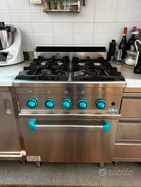 Vendo cucina professionale MBM (Brescello – Italia), modello G4SF7, in acciaio inox, completa di cappa professionale. Si tratta di attrezzatura professionale, ma utilizzata sempre in ambito domestico privato, quindi con un livello di usura molto inferiore rispetto a quello tipico della ristorazione. Cucina MBM: •4 fuochi professionali ad alta potenza •forno a gas integrato, ampio e capiente •struttura in acciaio inox •potenza totale: 24,2 kW •perfettamente funzionante Dimensioni cucina: 70 x 70 cm Cappa professionale inox: •dimensioni importanti: 120 x 90 x H 50 cm •ottima capacità di aspirazione •ideale per uso professionale La cucina presenta normali segni del tempo, coerenti con l’utilizzo domestico, ed è pronta all’uso. Prezzi: •Cucina MBM G4SF7: €1.100 •Cappa inox: €500 Ritiro a mano Possibilità di visionarle senza impegno