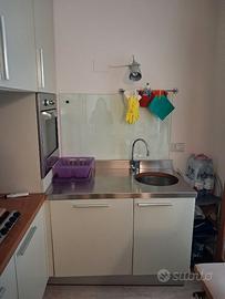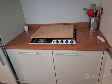 cucina col. sabbia satinata ad L 240*120 h. 280 comprensiva di frigorifero/congelatore/forno elettrico/piano cottura a gas/ lavello e piano in acciaio . da smontare e trasportare a carico acquirente.