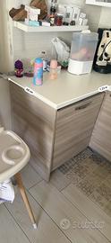 Cucina angolare, incluso piano cottura, lavandino, forno e lavastoviglie ma quest’ ultima da riparare.