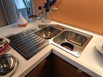 Cucina di esposizione noce ( non laminato ) con piano cottura lavello forno. colonna predisposta per frigorifero comby 320l. l. 330 x 240