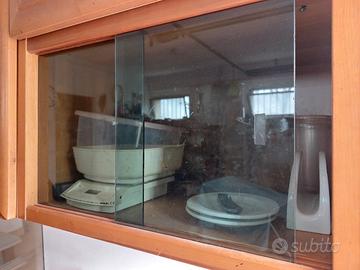 Cucina con fiamma a 4 fuochi Armadietti, in legno e sportelli in vetro. forno elettrico serve però cambiare resistenza