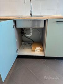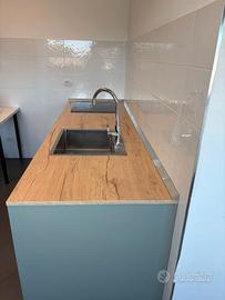 Cucina con fornello a induzione, lavastoviglie e lavello. Profondità 70 cm (è più profonda delle normali cucine da 60)Larghezza 230cm. Il top è in laminato di ottima qualità. Lavastoviglie e fornello a induzione Beko. Utilizzata per un anno in un ufficio quindi pochissimo al pari del nuovo. Le misure sono indicative se interessati vi forniremo le misure precise.