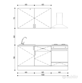 Cucina Asti 180 cm. reversibile elettrodomestici inclusi colore rovere grigio chiaro e maniglie in metallo nero