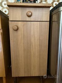 cucina in legno composta da: pensili contenitori più scolapiatti e cappa aspirafumi dim L 240 cm (anche divisibile in tre parti da 80 cm) H 55 cm P 40 cm; base con sportello e cassetto dim L 40 cm H 90 cm P 50 cm ; colonna dispensa con due sportelli dim L 40 cm H 207 cm P 40 cm ; tavolo cucina allungabile dim L 100-150 cm H 70 cm P 70 cm . Prezzo trattabile