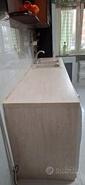 per ristrutturazione urgente vendo cucina come in foto con Lavandino in fragranite 2 vasche, piano cottura a gas 5 fuochi ma funzionanti 4 (no centrale). Forno a gas funzionante. Cappa ad aspirazione funzionante.Piano di lavoro lavandino cm 246 e zona fuochi cm 196 entrambi completamente in granito. Frigorifero S. Giorgio perfettamente funzionante. Tavolo legno 100 cm allungabile + 30 cm ( non presente in foto per insufficiente spazio). smontaggio e trasporto a cura dell' acquirente. Prezzo trattabile