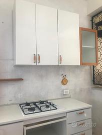 Cucina completa di piano cottura, pensili con ripiani, doppio lavello, scolapiatti e vetrina