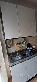 Vendo cucina completa di tavolo macchina del gas forno a gas lavandino scolapiatti con base di marmo e pensili lunghi e vetrina centrale