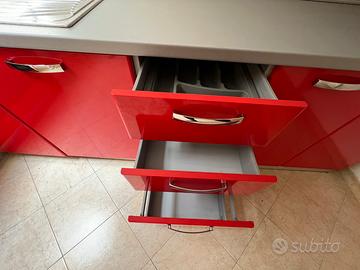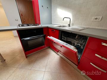 Cucina con penisola in buono stato, compresiva di forno, lavastoviglie, frigo e congelatore tutti marca Indesit. Prezzo 1.200,00 euro trattabili. Primo contatto su whatsapp. Misure: lunghezza totale 3,66 mt, h 2,12 mt.