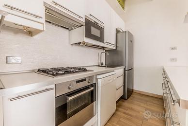 Vendo cucina IKEA con bancone completa di elettrodomestici (fornelli a gas, forno elettrico, forno a microonde, lavastoviglie e frigorifero). La cucina è come da foto, compresa l'ulteriore fila di pensili verdi. Ritiro a carico dell'acquirente.