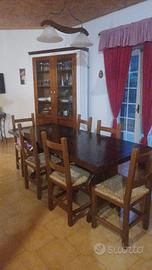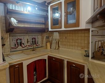 Vendo magnifica cucina interamente fatta a mano con materiali di altissima qualita,' a partire dal piano in travertino con splendita finitura del bordo arrotondato alto 5cm, alle ante realizzate in legno massello color noce con eleganti maniglie in ceramica decorate, piano cottura 5 fuochi con griglie in ghisa ,cappa a filtri ,lavello a due vasche in fragranite,grande piattaia a muro coordinata, rigorosamente fatta a mano, tavolo e 6 sedie di legno massello lampadario e mobile vetrina abbinato per cristalleria.