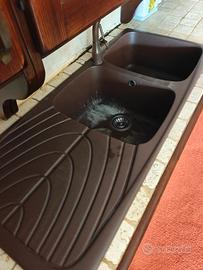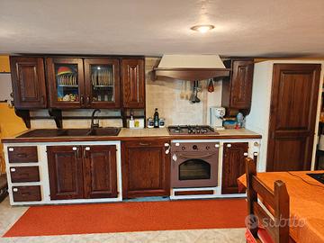 Cucina stile rustico in finta muratura, misure 3,75×1,90, compresa di forno, frigorifero e lavastoviglie (da sistemare). Lavello in fragranite macchiato, difetto estetico ma funzionale. Visibile a Montecelio