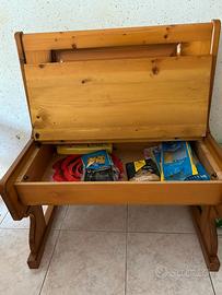 Vendesi Tavolo rettangolare allungabile con 2 prolunghe conservate sotto il tavolo stesso, 4 sedie, 3 panche contenitori e mobile da usare in 2 moduli separati o unito. Misure