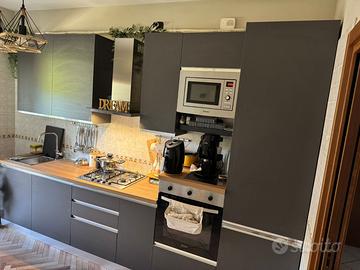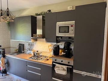 Cucina compresa di elettrodomestici, lavastoviglie, micronde, forno, frigo e congelatore. Vendo insieme alla cucina anche il tavolo allungabile e le sedie. Misure 340cm di lunghezza e altezza 240cm.