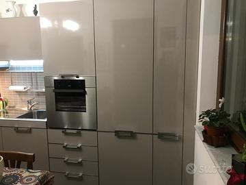 Vendesi cucina salvarani laccata grigio tortora. Completa di lavastoviglie, forno, frigo da incasso, cappa e lavello in inox. La cucina è seminuova, forno e lavastoviglie mai usati. Lunghezza 4.3 con fascia di tamponamento Prezzo di acquisto a nuovo 18.000. Si vende dopo visione a 3.800 poco trattabili. Solo contatto telefonico e vendita di persona.