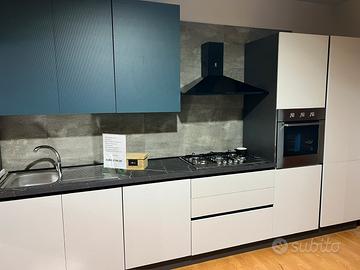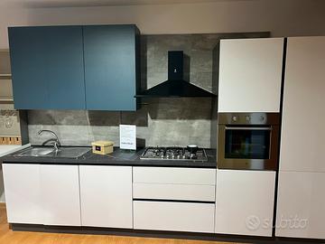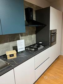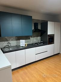 Cucina mod. Sandy cm 364 con pensili alti bicolore completa di eletrodomestici forno frigo 300 litri PC 75 cm e LVS con top in laminsto da 4 cm spessore ante con gola in offerta prezzo bomba 2800 euro