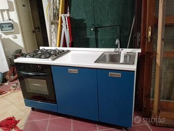 vendo cucina misura 160 cm compreso di forno, cappa e fuochi. la blu ha un piccolo difetto al piano in legno. quella è trattabile di prezzo.