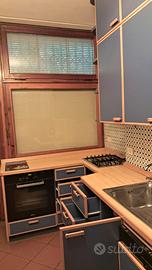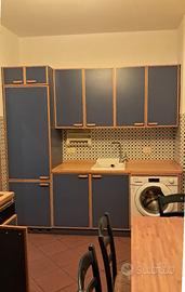 Vendesi cucina usata di buona fattura e ben conservata compresi gli elettromestici (lavello, forno, fuochi, frigorifero combinato). La porzione con lavello ha uno sviluppo di 2,70 m, mentre quella con frigo e lavatrice uno sviluppo di 2,30 m. La cucina è smontata il piano è stato smaltito. Nel prezzo è compreso anche il tavolo. La lavatrice e le sedie sono escluse dalla vendita.