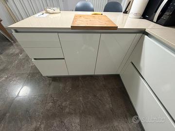 Cucina Scavolini bianca laccata con penisola – ottimo stato Vendo splendida cucina Scavolini acquistata nel 2014, in finitura laccata bianca, sempre tenuta con grande cura. La cucina è ampia e molto funzionale, completa di penisola e numerosi spazi contenitivi. Il piano di lavoro è in quarzo effetto marmo, resistente e facile da mantenere (sempre pulito con prodotti delicati). Caratteristiche principali: Cucina grande con penisola Finitura laccata bianca Top in quarzo effetto marmo Molto capiente e comoda per uso quotidiano Elettrodomestici inclusi: Lavastoviglie Rex (ottimo stato) Forno Whirlpool Piano cottura Rex Gli elettrodomestici sono funzionanti e ben mantenuti. L’unico elemento eventualmente da aggiornare è il piano cottura, sostituibile con induzione per maggiore modernità. Condizioni: Usata ma in ottimo stato generale, senza difetti rilevanti. Prezzo: €7.000 (non trattabili) Pagata €13.500. Vendo solo per cambio esigenze (necessità di cucina più piccola). Si preferisce vendita completa, non smontata.
