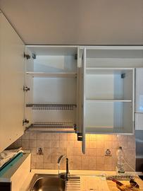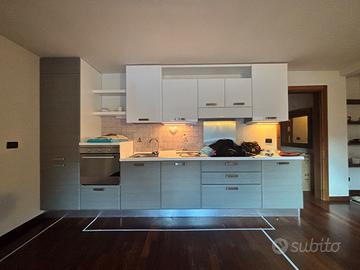 Vendo cucina Scavolini moderna e poco usata. Completa di frigorifero, lavastoviglie, forno ventilato in acciaio, piano cottura induzione 4 fuochi e lavabo in acciaio con rubinetto. Colore laccato bianco e laminato grigio.