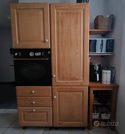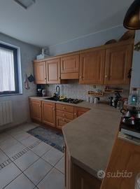 Set cucina angolare con tavolo+ sedie Scavolini in legno colore rovere naturale antico. Composta da: -colonna frigorifero -colonna dispensa+ forno SMEG -Cucina a Gas Smeg -4 pensili da 60cm + 1 pensile da 45 -3 moduli base da 60cm -1 modulo base angolare da 95cm -1 modulo base da 90 -1 modulo base terminale angolare da 45 -piano cucina truciolato sabbia -Lavello a una vasca in fragranite Franke -lavastoviglie Ariston Tavolo Baltimora Scavolini, allungabile 130x80 + 4 sedie Vendo per vendita immobile