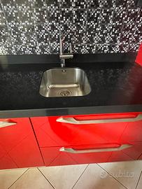 Vendo cucina Scavolini acquistata nel 2010, 360 cm lineari, componibile, colore rosso e nero, in ottime condizioni generali.Piano in quarzite (antigraffio e antimacchia, molto resistente e facile da pulire)