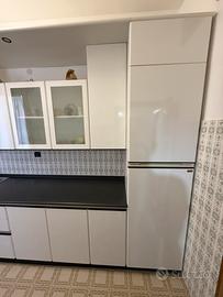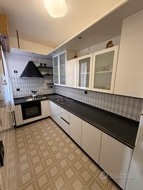 Cucina Scavolini in ottimo stato, design moderno laccato bianco con top nero a contrasto, sto perfetto. • Misure: Angolare 170 cm (lato fuochi) x 322 cm (lato lavello). Altezza 240 cm. • Elettrodomestici: Forno perfettamente funzionante, piano cottura, cappa nera e lavello doppia vasca. • Frigo: Colonna da 60 cm predisposta per incasso. • Extra: Pensili con ante in vetro satinato e veletta con faretti inclusi. Elettrodomestici e Componenti inclusi: • Forno Smeg perfettamente funzionante. • Piano cottura con 4 fuochi con comandi frontali. • Cappa di design a imbuto rovesciato in colore nero opaco. • Lavello con doppia vasca in acciaio inox con sgocciolatoio. • Illuminazione con faretti integrati inclusa. Lo smontaggio e il trasporto sono a carico dell'acquirente