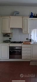 Cucina Scavolini laccata avorio opaco, bugne laccato azzurro. Composizione a U, completa dei seguenti elettrodomestici: frigo freezer whirlpool, lavello due vasce inox dekor franke, cappa scomparsa faber. Altezza 2,17 m Lunghezza 4,61 m - 2,56 m - penisola 1,96 m Profondità 0,60
