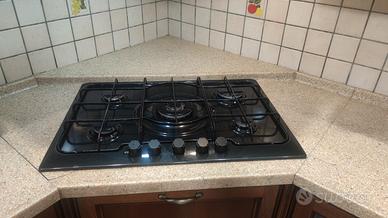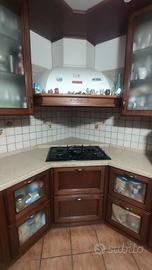 cucina angolare 3,75 x 2,70 altezza 2,40 completa di elettrodomestici. lavastoviglie, forno, piano cottura 5 fuochi, cappa e frigorifero. il piano angolare dove ci sono i fuochi presenta una leggera crepa. Essendo fragranite è riparabile. In caso sostituibile con qualsiasi piano.