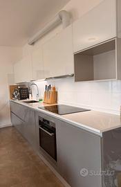Vendo cucina scavolini in vetro quasi nuova, lunghezza 388cm, compreso forno, lavastoviglie e induzione.