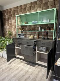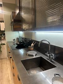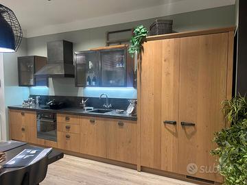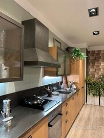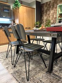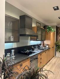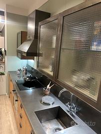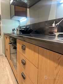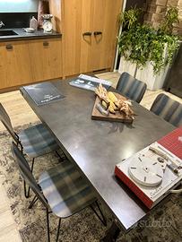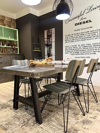 Cucina Scavolini Design VINTAGE modello Diesel Ruxe Wood completa come foto con Top acciaio e lavello integrato cm 468 + madia cm 192 + 4 sedie e tavolo cm 160 il tutto in acciaio Drip Metal e Rovere legno. Elettrodomestici compresi : Frigo, piano induzione cappa e Forno. Esclusa Lavastoviglie. cucina Nuova visibile in Expo ( store Scavolini Alba) il prezzo si intende smontata imballata Escluso Trasporto e Montaggio.